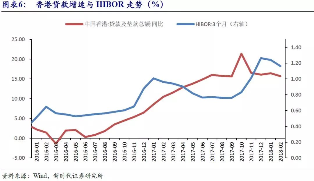 港元供给过剩的同时,需求收缩。房地产*款贷**是港元最重要的需求来源之一。2009年起香港房价进入上升通道,为了避免重演1997年的房地产泡沫破裂,香港政府不断加码各种房地产市场调控措施。2016年底,香港政府宣布并实施印花税新措施后,海外买家在香港购房的成本提升,除了统一征收的15%印花税外,还针对非本地居民征收15%的买家印花税,共计占房价的30%。2017年5月,香港金融管理局发布《按揭*款贷**的审慎监管措施》,针对有多笔按揭*款贷**以及收入来自香港以外地区的人,推出新一轮物业按揭的监管措施,继续调控房价。香港政府的*压打**下,2017年末香港*款贷**增速开始断降落,给港元货币市场利率带来下行压力。