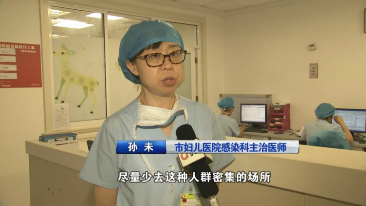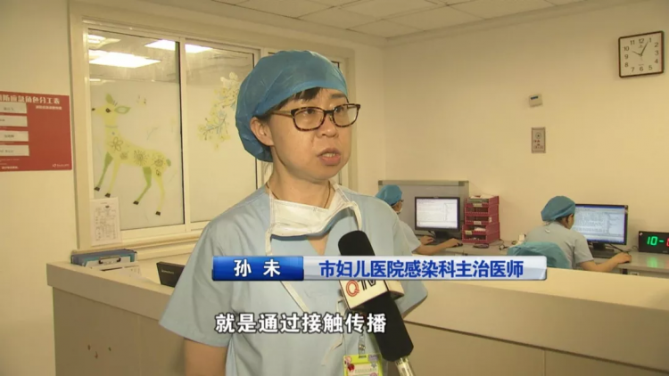 上午10点,记者在市妇女儿童医院感染科看到,门诊和病房里,有不少家长带着孩子前来就诊、治疗。市民李女士的孩子3天前发高烧,到医院一检查,原来是感染了手足口病。