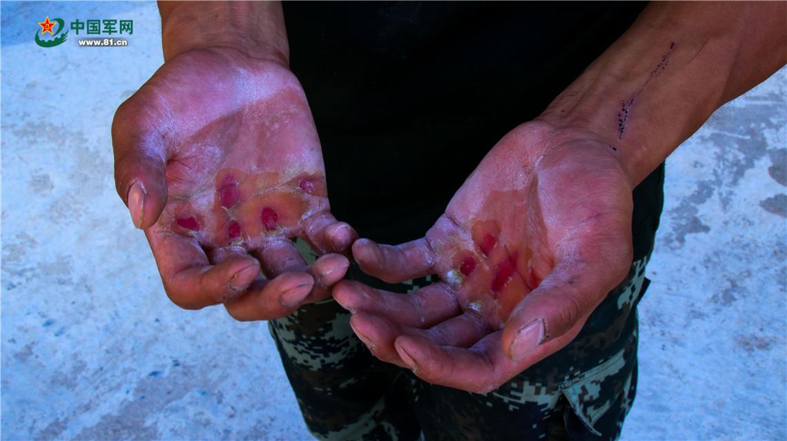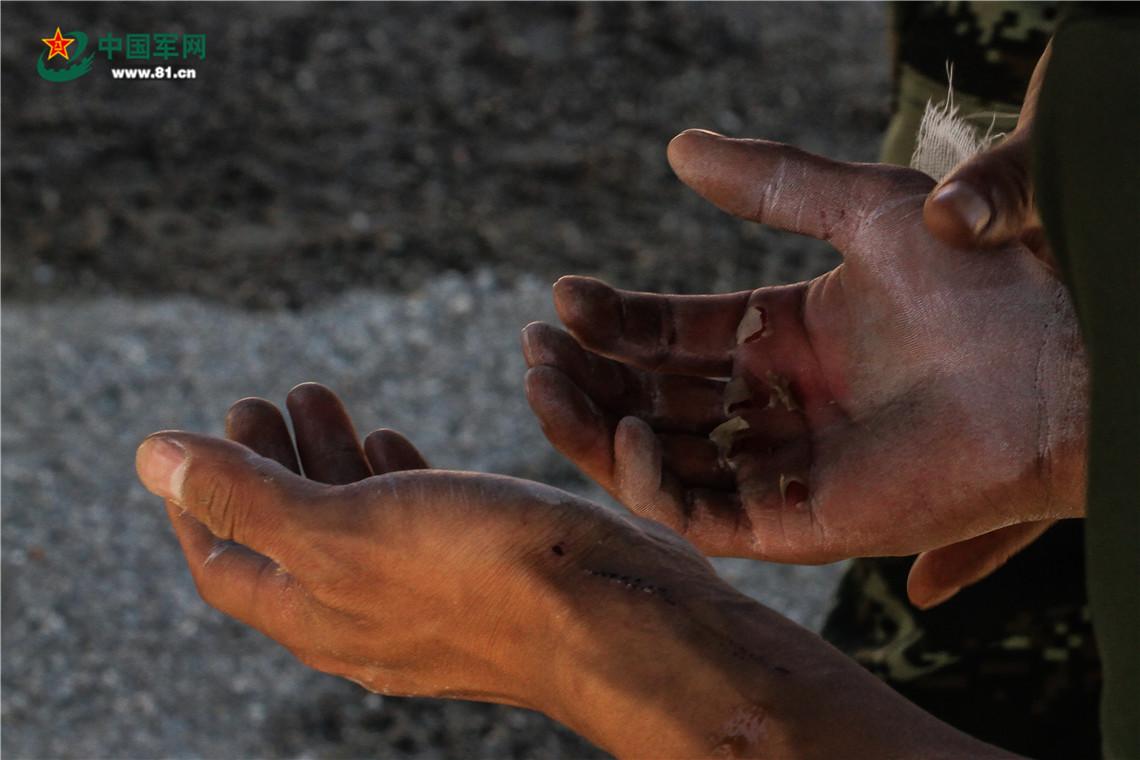 几乎所有的战士都超过了平时的最好成绩。但此时的蒋班长,却眉头紧锁。每多做一个就多0.3分,中队的综合成绩能够多出0.3分,名次也许就能靠前一个,但已经有五名战友的双手,被单杠磨的起泡掉皮流血。每多做一个,坚毅的脸庞都因疼痛而抽搐。血水染红了单杠,让人心疼不已。当军医用双氧水为战士们清理伤口时,一个个疼得咬紧牙关,却还是露着欣慰的笑……。看着战友的手,蒋班长偏过头去,深吸一口气,抿了抿发干的嘴唇,眼眶红了。“兄弟,好样的!”