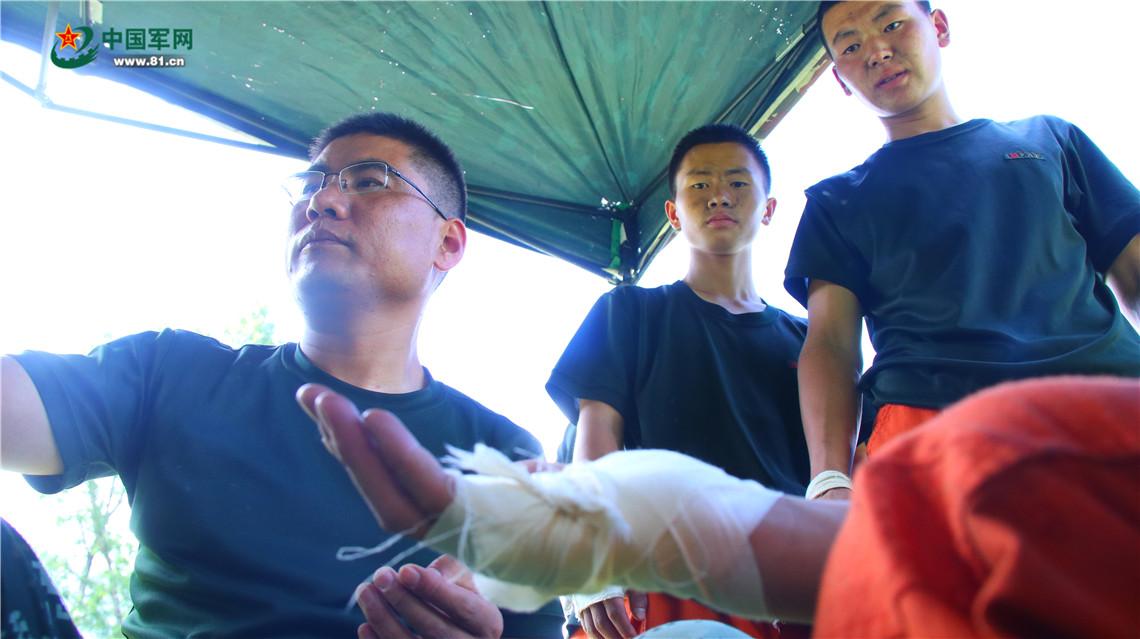 军医为战士们处理伤口。