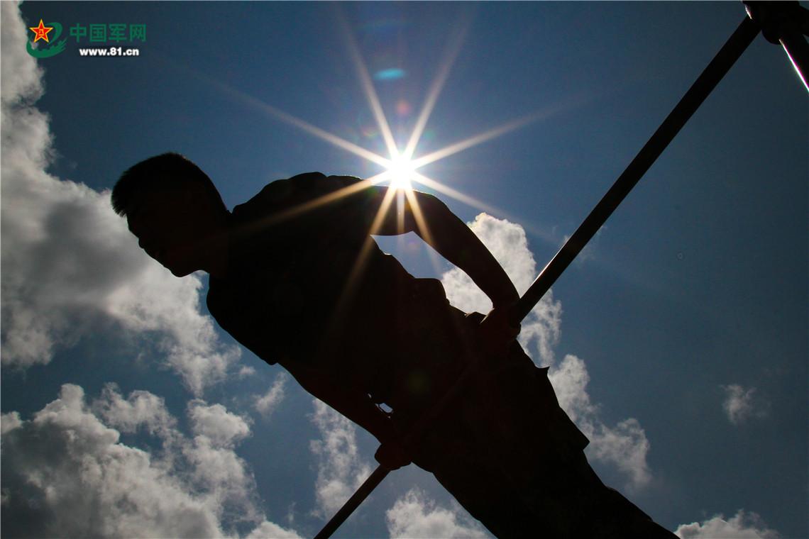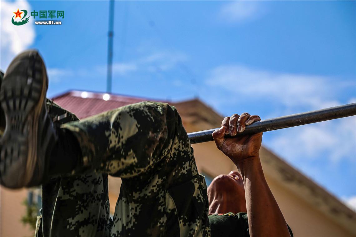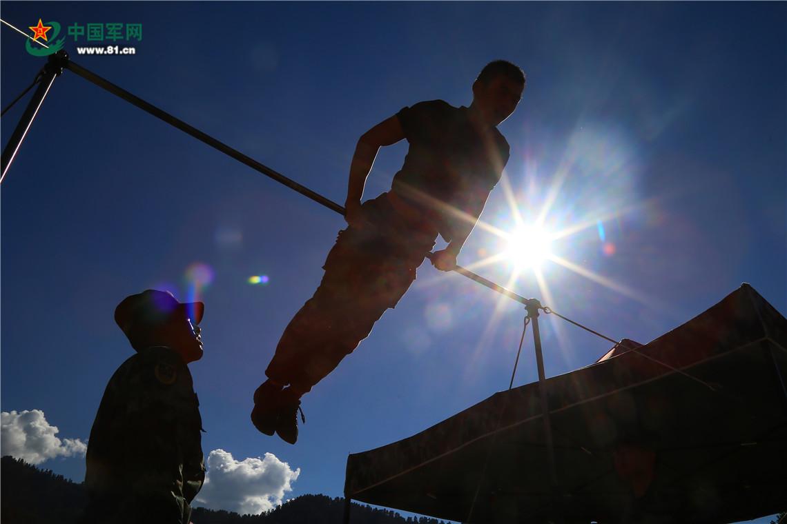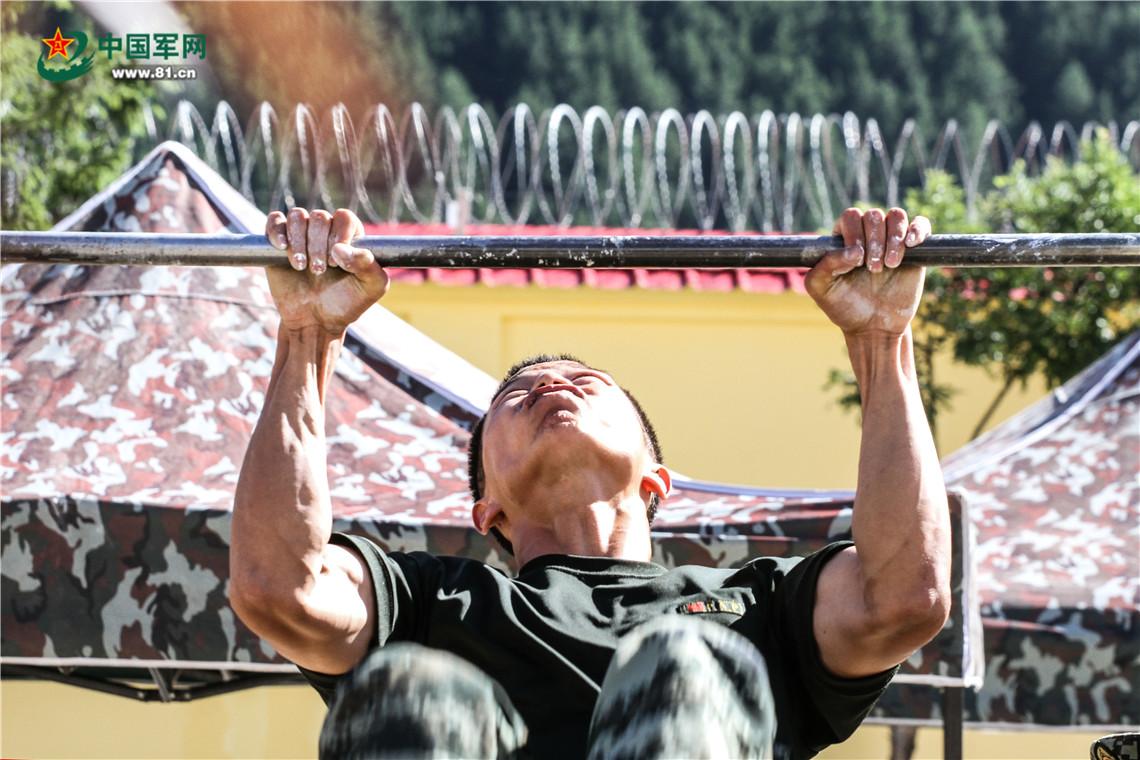 似火的骄阳依然在炙烤着藏区高原。“42、43、44……”战士武鹏举已经做到了第44个,他早已被汗水洗面,眼睛显的格外通红。“我还可以!我还能做一个!”他自己喃喃道,下颚的汗水一滴滴落在地上。