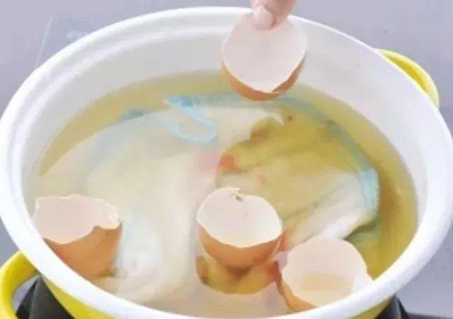 经常做饭的人肯定都知道,抹布上的污渍是最难清洗的,这时候鸡蛋壳就能帮上大忙了!我们只需要将脏抹布和鸡蛋壳一起丢到锅内,大火煮开后,再开盖煮5-6分钟。然后将抹布从沸水中捞出来,放入清水中轻轻揉搓,抹布就会立马变得亮洁如新喽~