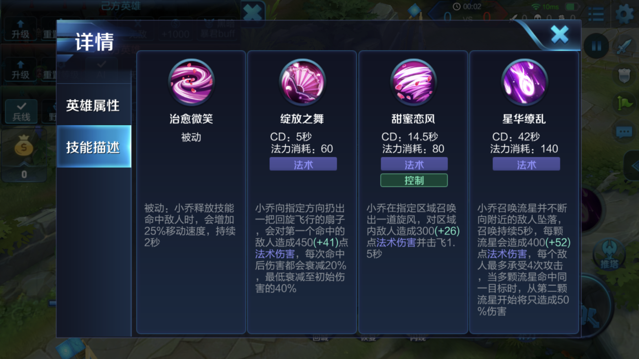 1、被动技能使得小乔走路都能带风,无论是野怪、兵线、远古生物还是英雄,只要技能命中,小乔都能增加移动速度,非常有利于逃生和追击。