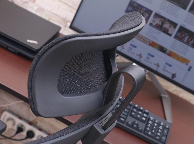 靠背底部特写。由于靠背是直接安装在底盘上的,与坐垫同升同降,靠背高度不可调。