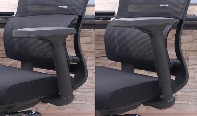 扶手角度可以左右/前后调整,但这个不带锁定功能,如果按着扶手推椅子的话有可能会移位。