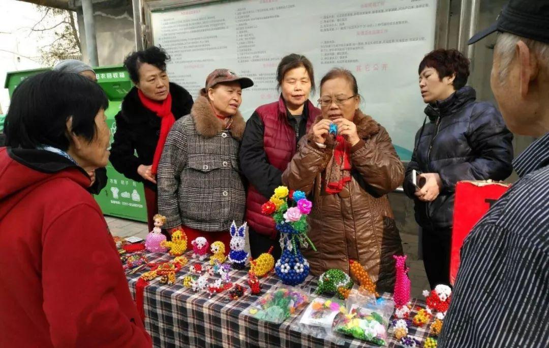 初春时节,乍暖还寒。活动现场,头发有些花白的王风琴站在寒风中,一丝不苟地教大家编织,只见她随手拿出细小的珠子和塑料线,戴上眼镜开始“飞针走线”,用心编织起一朵朵珍珠花。一遍遍地为大家做示范,不厌其烦,直到教会为止。