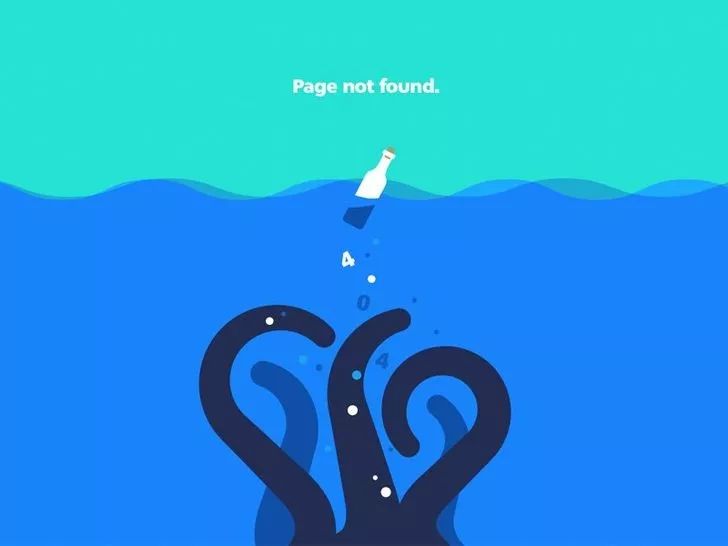 这个404页面设计层次更浅、颜色更深,以创建深度的外观(这是我们在第1点讨论的技术)。