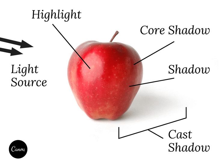 在我们就如何将光线和阴影融入设计中提出建议之前,有助于对其解剖学有基本的了解。这是艺术家和摄影师为了创作光线充足的作品而学习的东西,但它也可以帮助平面设计师和网页设计师创作逼真的光影效果。