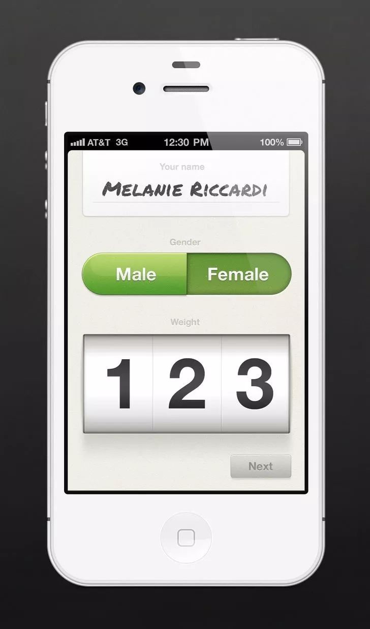 关注下面的按钮,是如何使用我们在整篇文章中讨论过的许多功能(渐变、高光、阴影)的组合来创建形状和尺寸。在这里高光尤其运用得很好;,在左边的按钮上,边缘上的细突出使得它看起来像按钮略高于表面(它是可按下的),而上半部分的圆形突出显示为凸起形状。左边的按钮使用内部阴影技术使其看起来被按下。