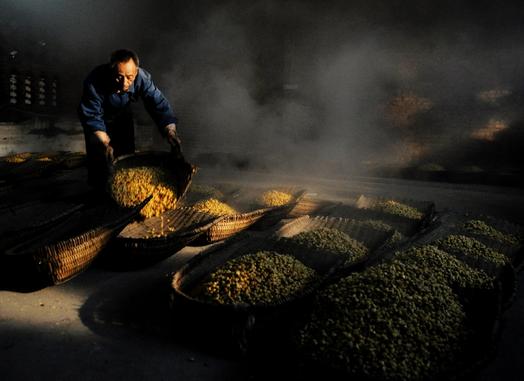 答:当酿好的酒液被好气性醋酸菌感染后,会在酒液表面上生成一层浅灰色的薄膜,薄膜逐渐变暗、起皱,使酒精氧化成醋。