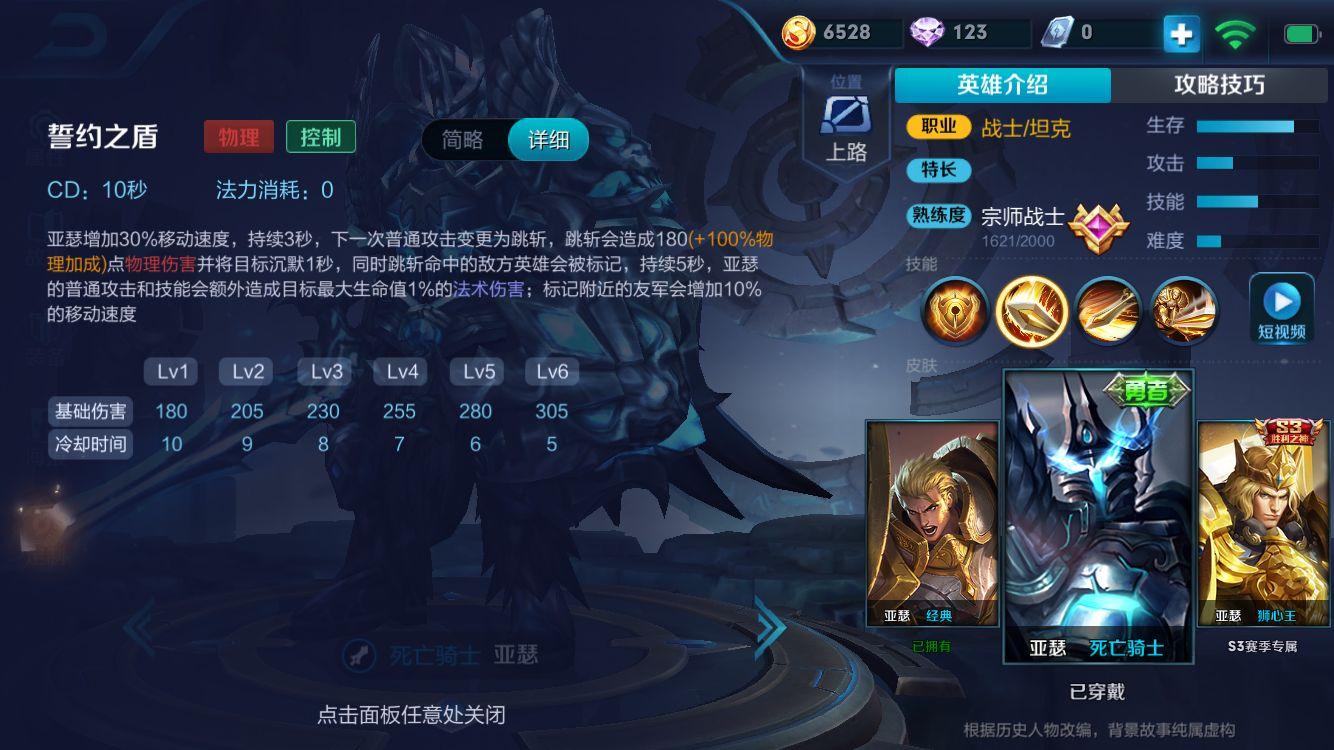 亚瑟一技能主要用来击昏敌人,还能增加30%的移动速度,持续3秒,每普攻一次,造成180(+100%物理加成)并沉默1秒,普攻和技能会额外造成敌人的1%法术伤害,给附近的队友增加10%的移动速度。