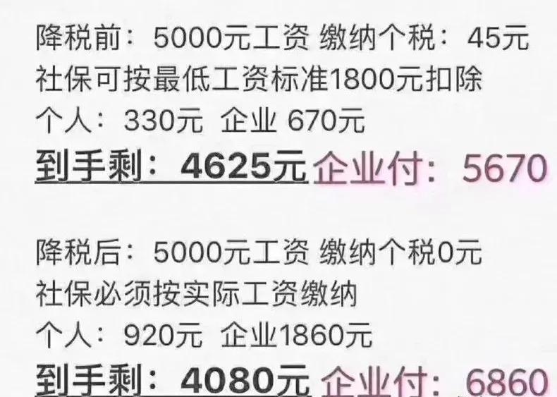 降税后,缴纳个税降为0元,然而社保必须按照实际工资缴纳,个人需要缴费920元,这样一来,到手工资仅剩4080元。