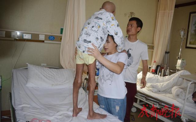 所以他给家里人提出了一个要求,那就是每天帮他锻炼身体。每天只要精神好些,何志霖都会在父母的帮助下,练习站立。