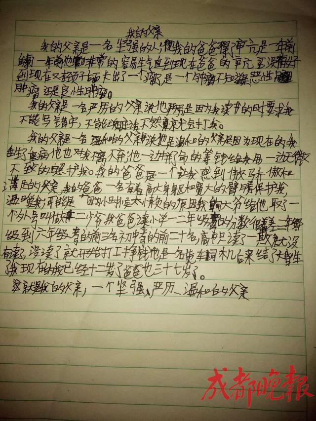 被病魔折磨的骨瘦如柴的志霖,也从没放弃自己的爱好,练钢笔字和写日记。一篇题目为《我的父亲》的日记,让何刚看了一遍又一遍,他用手机将这篇作文拍下来收藏起来。