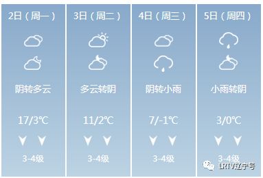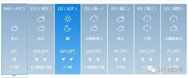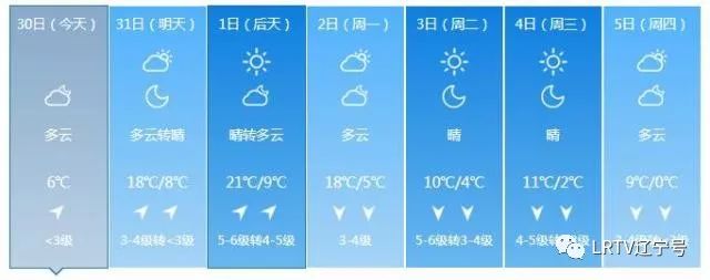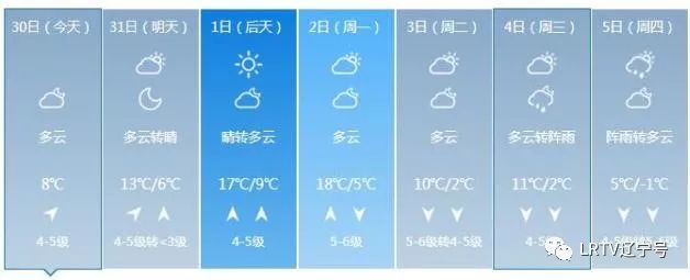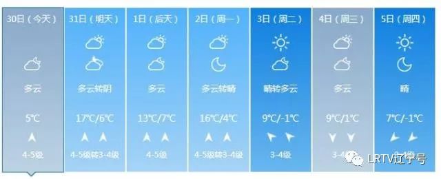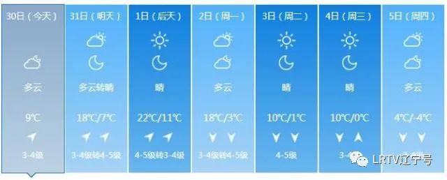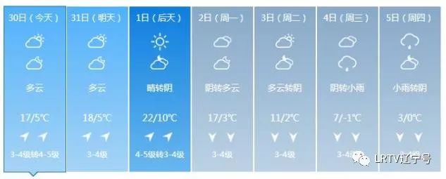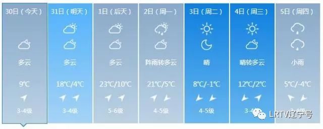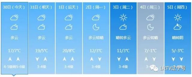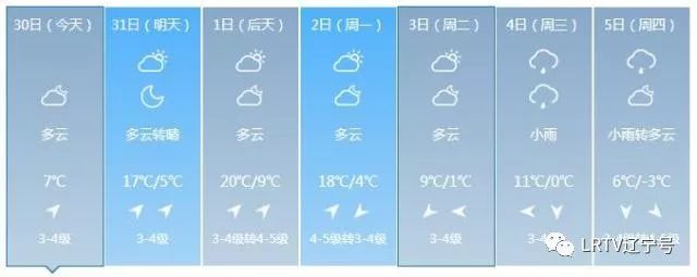 2日天气将出现变化,全天云量较多,最高气温只有17℃,北风也取代了西南风,大家要小心感冒着凉。3日气温继续降落,4日、5日沈城还将迎来降雨。