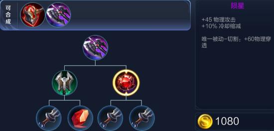 方式:一般的边路战士出完鞋子,建议预购陨星(cd和穿透)。有一些可能会出暗影战斧的射手,比如百里,建议预购日冕(普攻几率减速)
