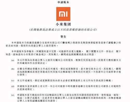 解读一:小米正式提交港股上市申请