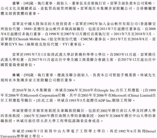2、同股不同权,A类股份每股可投10票,B类股份每股投一票。A类股份受益人为雷军和林斌。