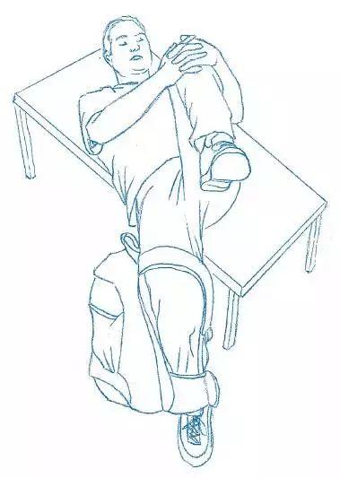上图第2张:大腿平贴桌面,但小腿延伸,表示股直肌僵紧。