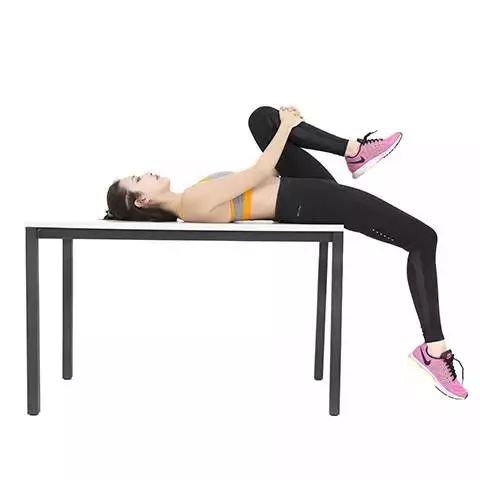 动作:仰卧,膝盖呈90度弯曲,脚放在地上。抬起臀部和背部,直到你的身体从肩部到膝盖呈一条直线。保持5到10秒。然后放下。重复10到12次。
