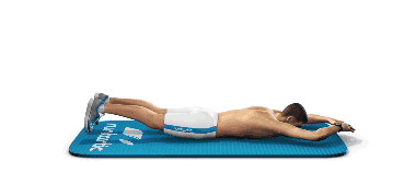 动作:吸气收紧腹部,同时手臂和腿同时向上抬起离开地面,拉伸你的腹肌。收缩你的竖直肌、稍微停顿一下,再慢慢呼气放松,回到原始位置。重复10到12次。