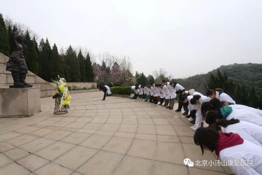 正值清明之际,医疗队成员们在义诊咨询活动之余,一同前往坐落于北京市卫生计生委*党**校内的北京市级爱国主义教育基地“救死扶伤”纪念坛,举行以“践行担当、提升团性”为主题的团日活动,共同缅怀在2003年为抗击“非典”牺牲的九位烈士。青年医务工作者共同为非典烈士敬献花篮,瞻仰烈士纪念墙,重温入团誓词,随后参观了圣手墙及院士墙。通过此次活动,使医务工作者们受到了深刻的爱国主义教育,坚定理想信念,提高*党**性修养,激发了青年医务工作者立足岗位,为社会奉献的热情。