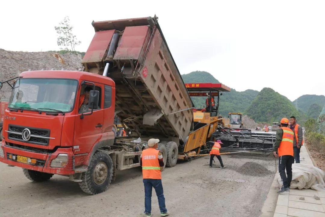 (3)日前,六威高速路面一标段率先在六盘水境内段开始摊铺水稳层,不长将开始铺沥青。截至2018年4月底,累计总体形象进度87%,完成路基形象进度98.8%,桥梁形象进度96%,隧道形象进度93%。目前,项目建设进展推进顺利有序,有望在2018年年底建成通车。