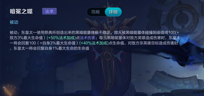 东皇太一的被动暗冕之噬和1 技能日蚀祭奠是相辅相成的,这也是东皇1级强势的原因所在,1技能最多可以积累三个能量球,配合被动的吸血效果,身边敌方英雄人越多,吸血效果越好,不要怂就是刚。