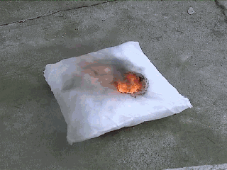 明火从下而上烧了起来,发出大量烟雾的同时,整个抱枕瞬间被烧成了一团灰。