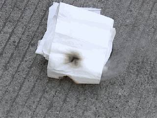 在刚开始的一分钟时间内,纸张没有什么变化,一阵风吹过之后,纸张下面冒出了白烟。