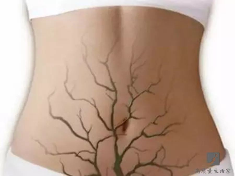 (2)腹部青筋,即俗话说的“青筋过肚”,这已经是比较严重的积滞,一般是肝硬化的标志。