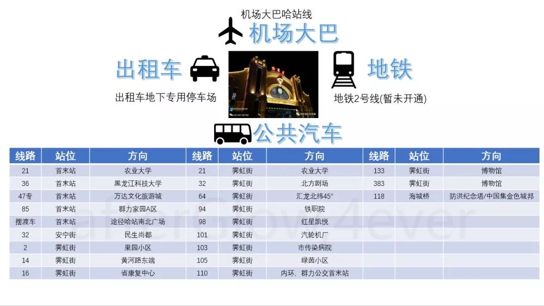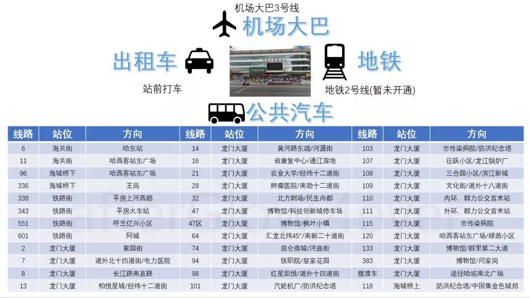 5、去往南岗客运站:乘坐机场大巴哈站线,然后在北广场首末站换乘便堵车环线到“哈站(龙门大厦)”站下车;