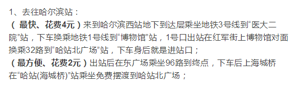 1、去往哈尔滨站: