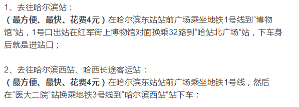 2、去往哈尔滨西站、哈西长途客运站: