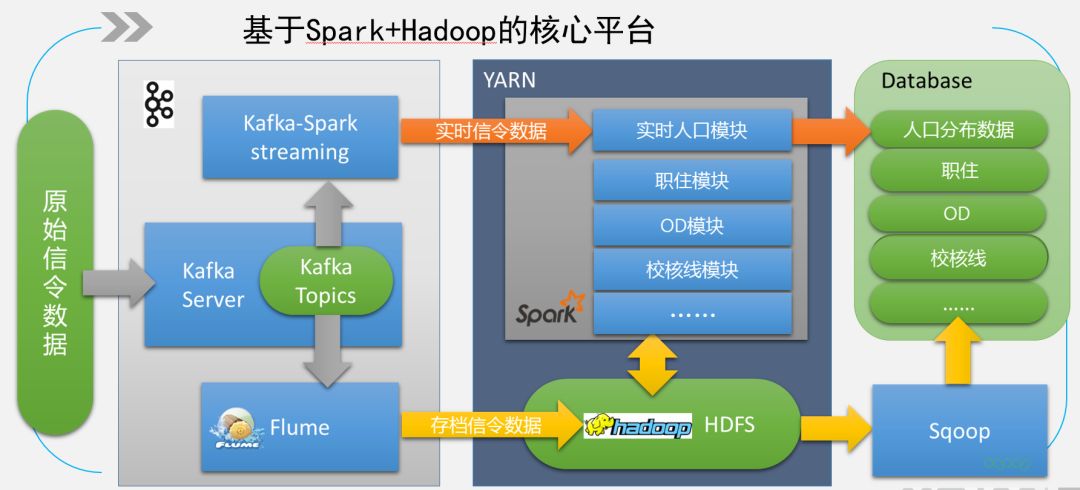3)业务层主要是实现针对原始手机信令数据的数据清洗、匹配、分析、挖掘,是整个平台系统建设的核心。
