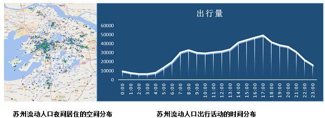 根据手机用户的出行轨迹以及停驻信息,可以判断手机用户的大致的发出地与目的地,以及出发与到达时间,进而分析苏州市人员的出行情况,包括出行时辰、出行频次、空间联系等。