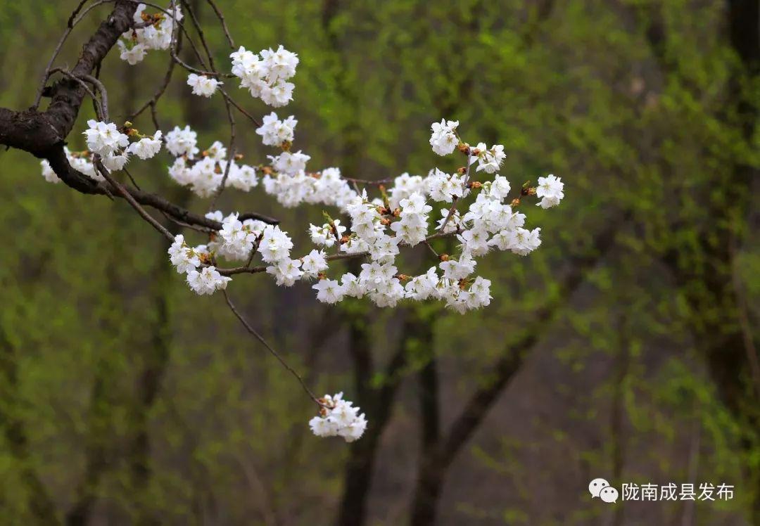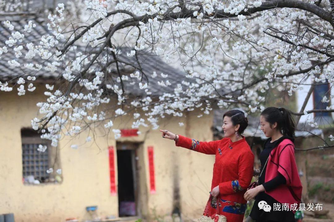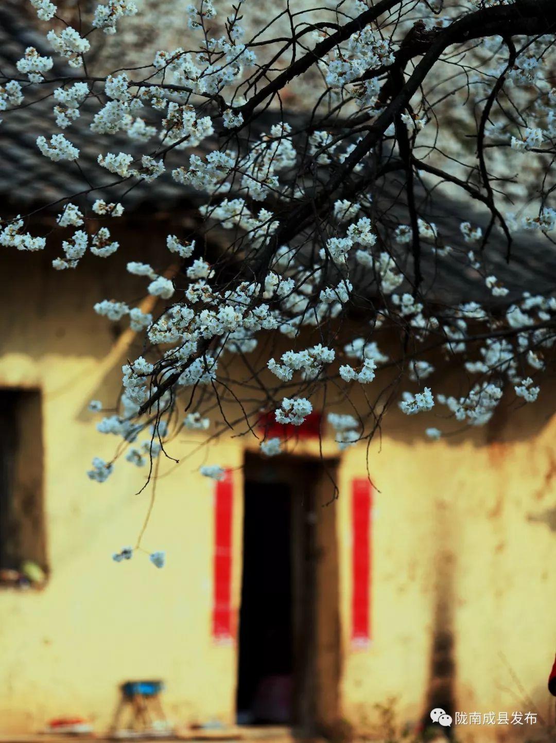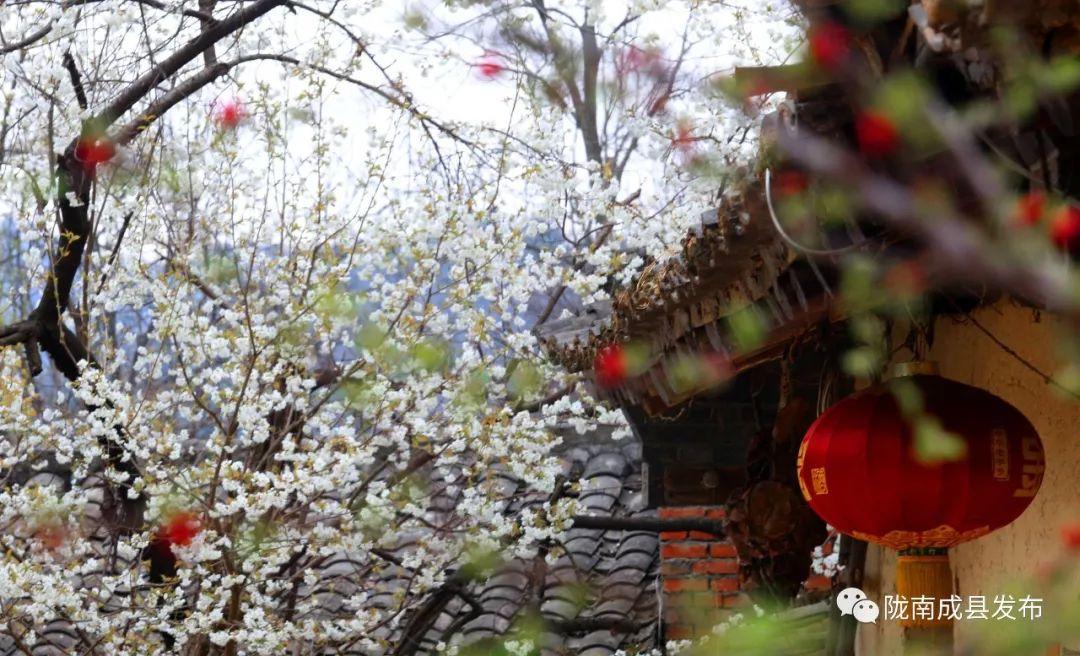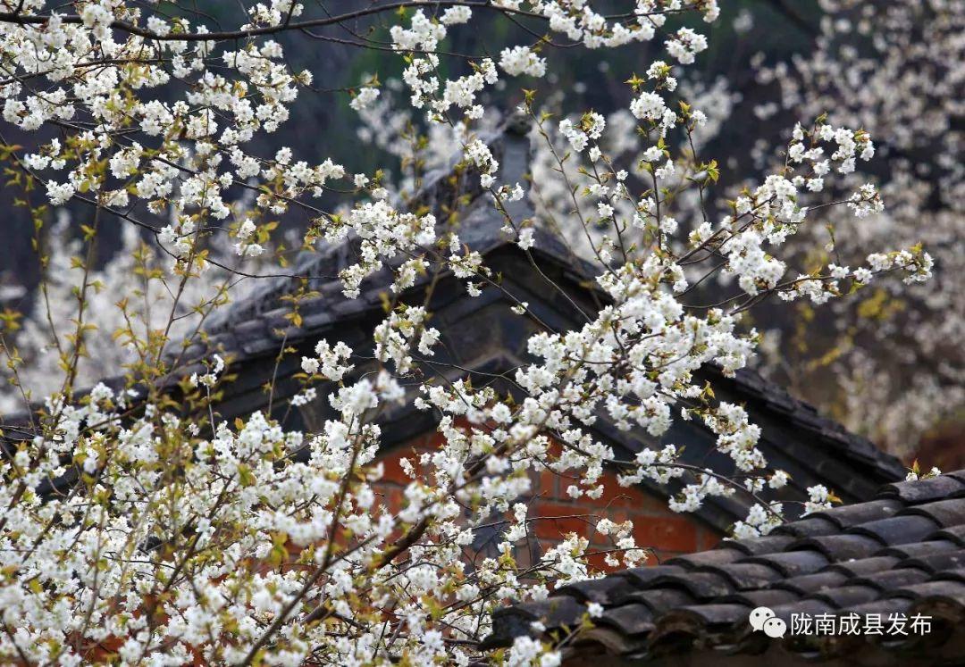 (单山村位于成县著名景点“西狭颂”东北角的高山之巅,村内有上百亩的樱桃花,以花白果甜而响誉十里八乡。单山村阡陌村田,各种林木围绕在村子周围,桃红柳绿,确是近期欣赏山村自然风光的好去处。