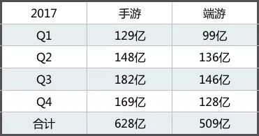 腾讯游戏2017年手游端游收入统计