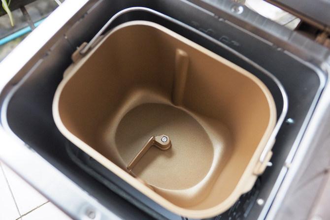 揭开盖子,我们就可以看到面包机的核心部分:面包桶。其采用了3mm的加厚紫金内胆,单次浇筑成型,让桶内的温度分布更均匀,进一步提升面包的观感与口感。