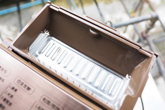 除此之外,这款面包机还配置了自动撒果料功能,果料盒容积较大,能容纳多种果干。使用方法也十分简单,只需要将果干、坚果等果料放置在果料盒中,并在设置时勾选“果料”一览,面包机就会自动的把果料投撒进去。