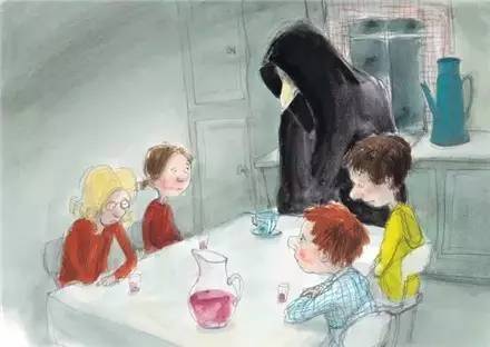 孩子和死神围坐在客厅,默不作声,孩子们知道死神为何而来,更知道,那个时候快到了......