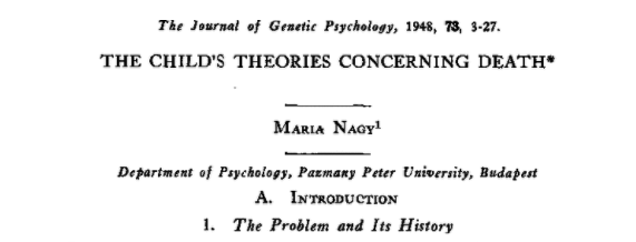 早在1948年,匈牙利心理学家玛丽亚·耐基(Nagy)在《发生心理学杂志》上发表了一篇学术文章,“儿童关于死亡的理论”。
