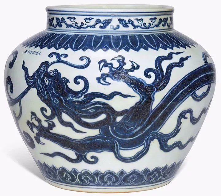 明宣德 青花灵芝龙纹大罐