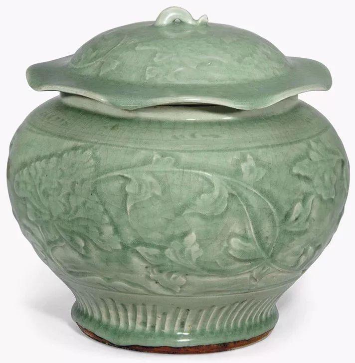 龙泉青釉花卉纹盖罐