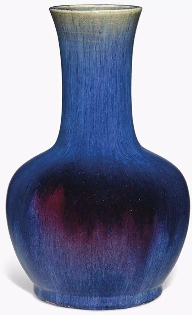 张为君:窑变是以高温焙烧而成的蓝、紫、红色彩釉。由于彩釉中的铜或其他金属成份在稀薄的彩釉表面分解,因此形成幻彩的效果,成就独特的窑变釉瓷。即使瓷器的外形一样,亦无法找到两件完全一样的窑变釉瓷,因为窑变釉无法控制,因此更加引人入胜。虽然窑变釉瓷展现抽象美感,但市场价格却不如装饰精致的明清御瓷。窑变釉具有独特的抽象美态,它虽非典型的中国彩釉,但其色调亮丽,是我最喜欢的彩釉之一,应该得到更高的评价。