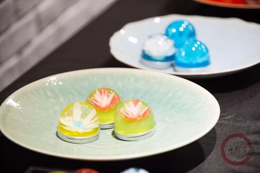 CHI哩展台上的胶原蛋白肽花冻,盛器由东味西厨提供