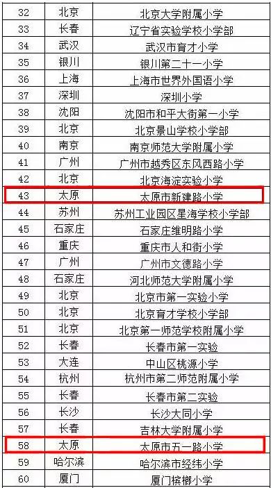 @品味l :太原上榜的两所小学应该在太原市的三强以外。