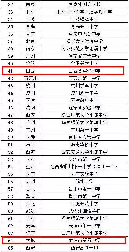 《2017年中国最具影响力中小学百强榜》日前出炉啦,太原共有2所小学和3所中学上榜。分别是:太原市新建路小学、太原市五一路小学、山西大学附属中学、山西省实验中学和太原市第五中学。