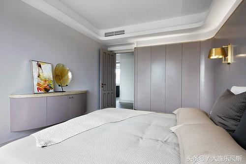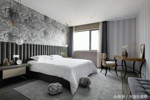 主卧壁纸有日系浮世绘的感觉,却显现当代审美的精致细节,而选自英国梳妆台,用一条弧线,将女性的柔美和温情导入其中。