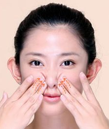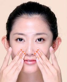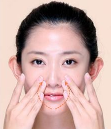 2、绕过嘴角两侧,到达鼻翼两侧,来回往复循环按摩。